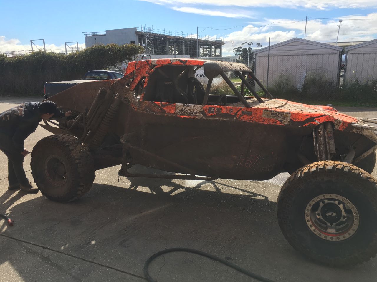 The team were in front of Rana Horan 2min 31secs at the end of Heat 1 and after some near perfect driving conditions increased this lead to 7mins 6 secs in front of Tyler Owen at the end of Heat 2. Car was perfect, the Shane Wilson Competition Engine Ford Ecoboost was running faultlessly, the Mickey Thompsons 100% doing their job, Albins transmission not missing a beat as per usual and the HJC Helmets keeping the drivers heads safe and cool in trying conditions – visibility no issues.